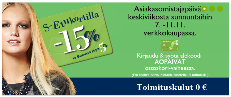 7.11.-11.11. Saa Sokoksen verkkokaupasta 15 % alennuksen S-etukortilla!